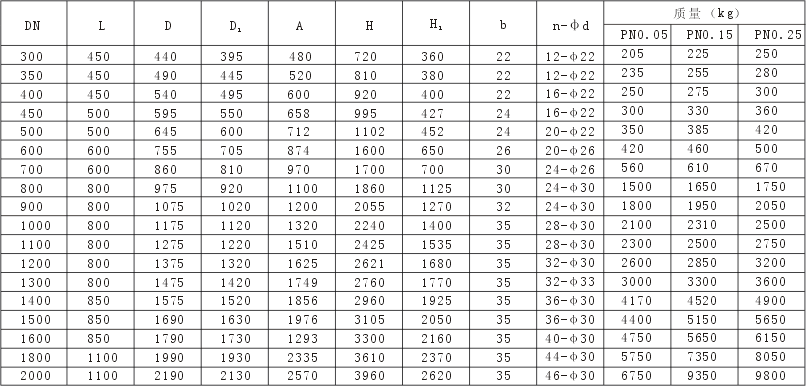 F743X-(0.5、1.0、1.5、2.0)液(ye)動扇(shan)形盲(mang)闆閥(fa)主要(yao)外形(xing)連及(ji)接尺(chi)寸表(biao)