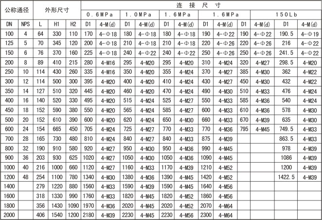 主(zhu)要外形和(he)連接連接(jie)尺寸(對夾(jia)式)